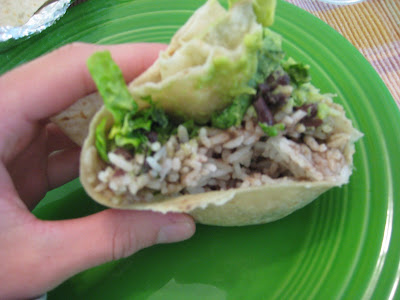 So Mom treated me! I got a vegetarian burrito with rice, black beans, guacamole, and lettuce. Mmm. Their guacamole is so good. (Speaking of which, it looks like we're going to have a ton of avocados on our avocado tree this year!!)